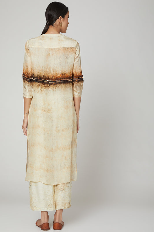 Beige & Brown Printed Tunic With Pants