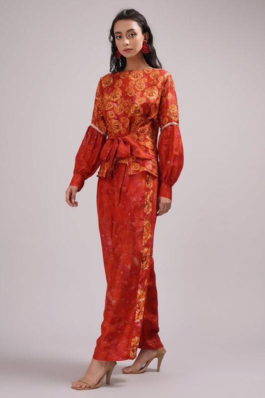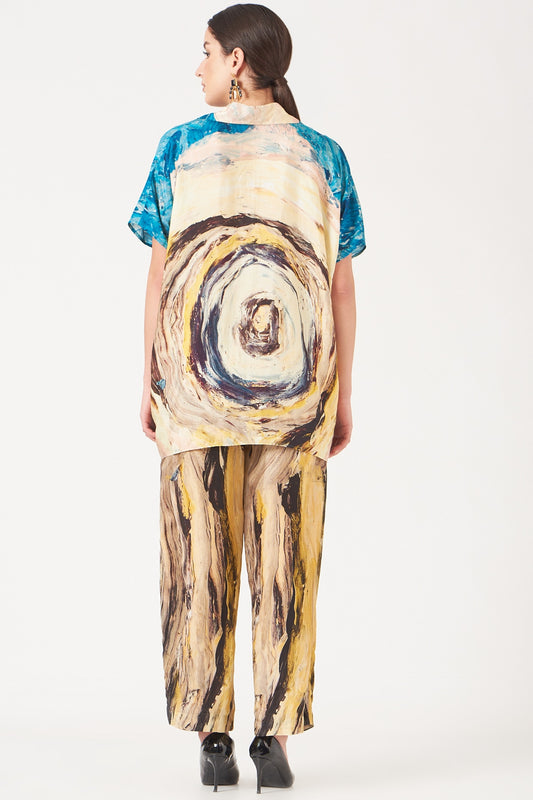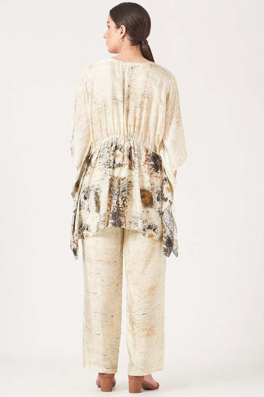 Beige And Gold Divine Print Top And Pants Coord Set.
