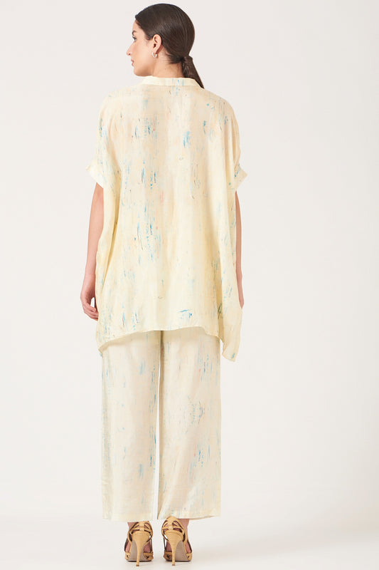 Pale Yellow And Blue Tunnel Print Kaftan Top And Pants Coord Set