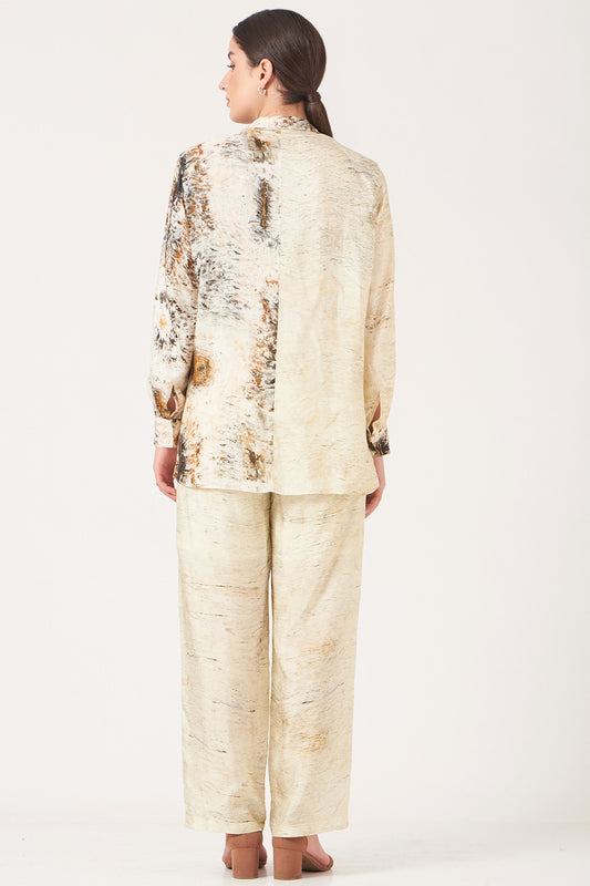 Beige And Gold Scar Print Top And Pants Coord Set.