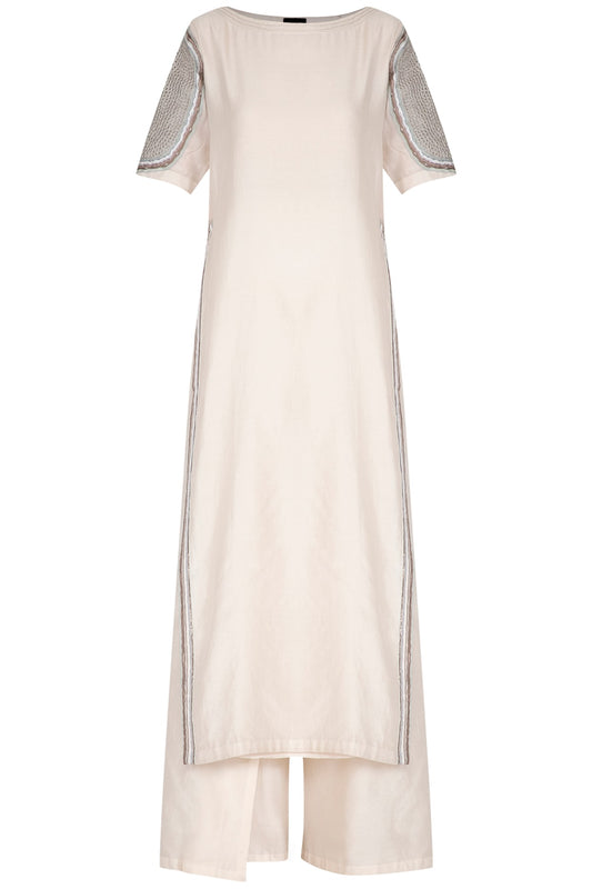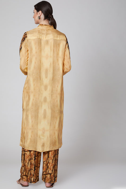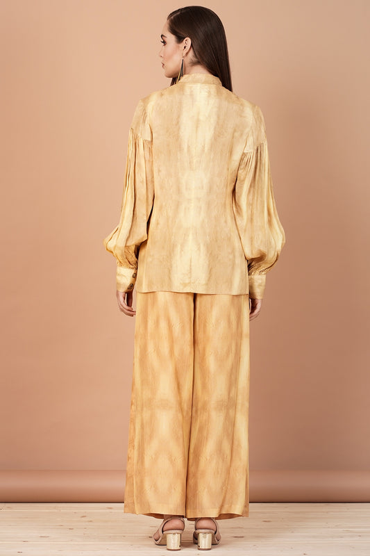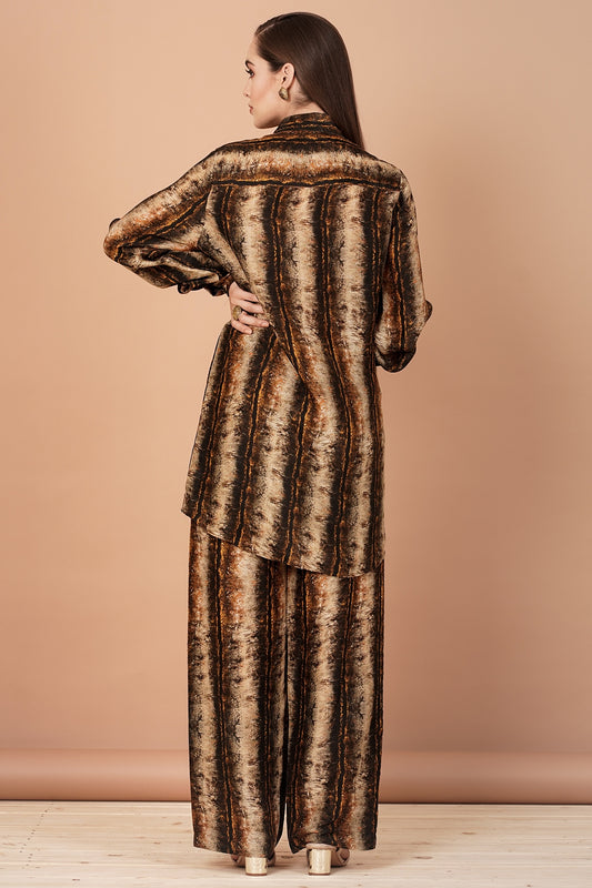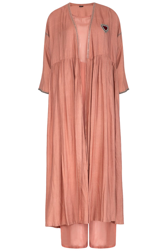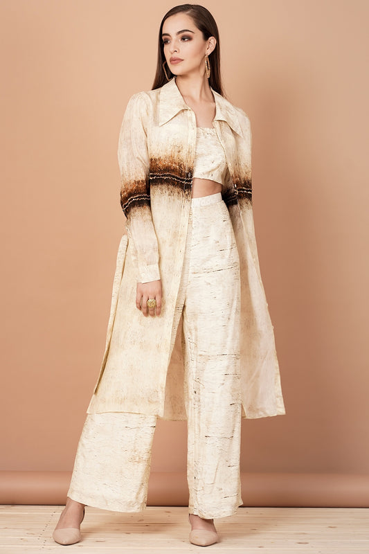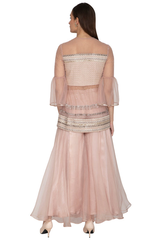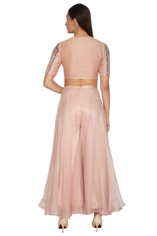 Copper Embroidered Tie-Up Shrug With Crop Top & Palazzo Pants