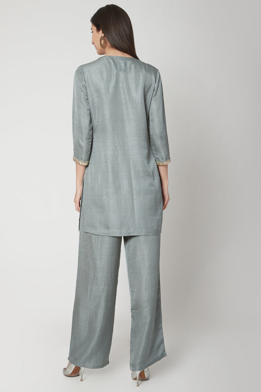 Charcoal Grey Embroidered Kurta & Pants