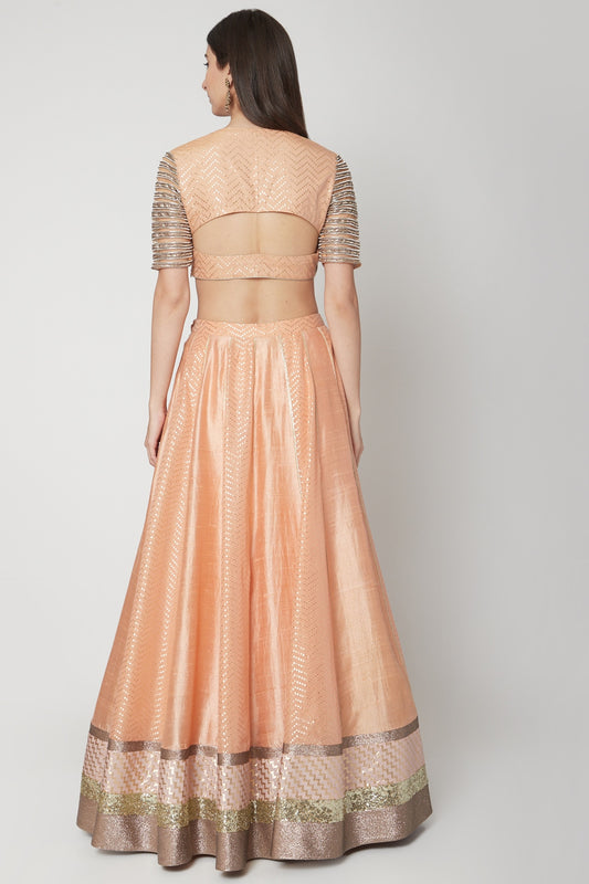 Nude Dabka Embroidered Lehenga Set