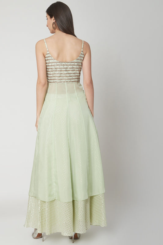 Mint Green Embroidered Kalidar Kurta Set