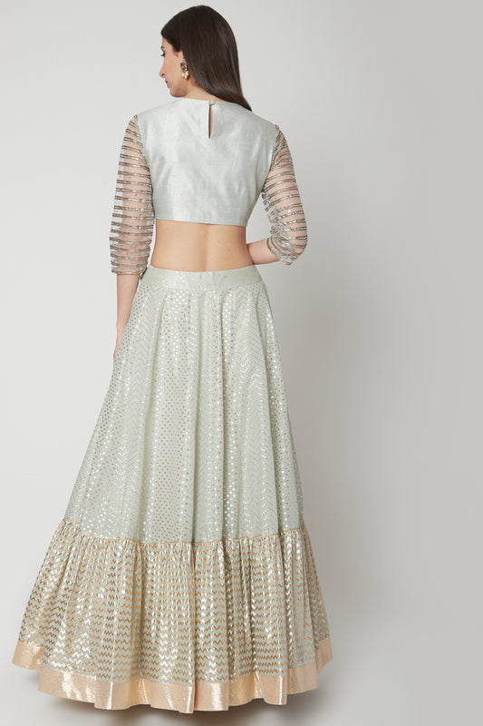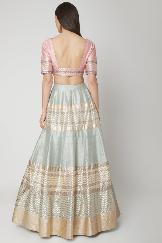 Powder Blue Dabka Embroidered Lehenga Set
