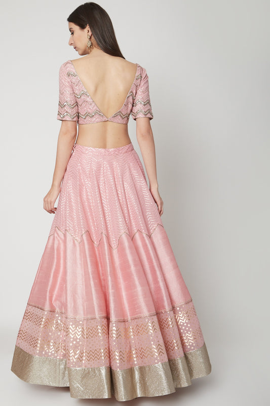 Light Pink Embroidered Lehenga Set