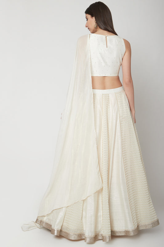 Off White Embroidered Lehenga Set