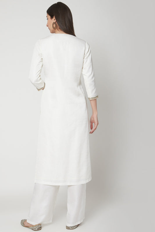 Off White Embroidered Kurta Set