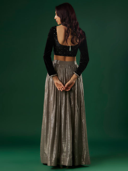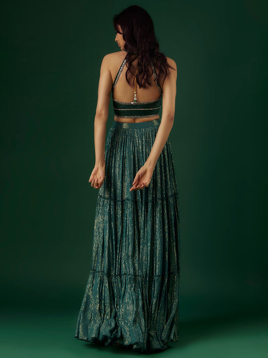 Avtar Blue Shimmer Georgette Tiered Lehenga Set