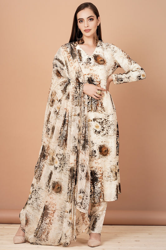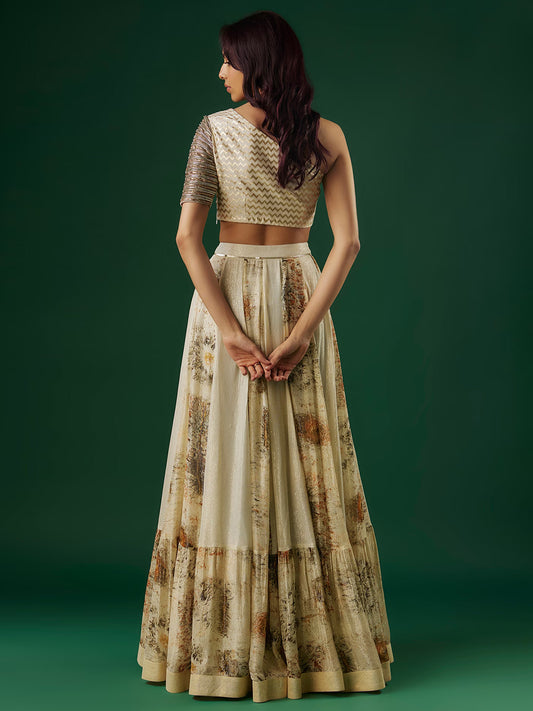Off-White Shimmer Georgette Handpainted Lehenga Set