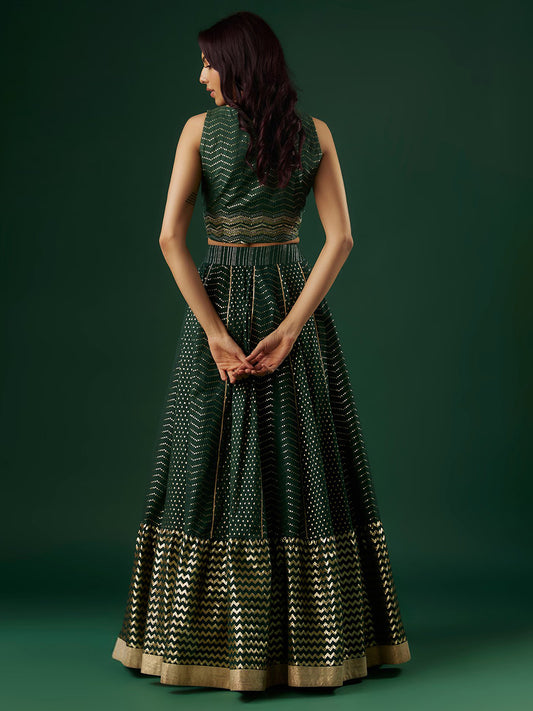 Deep Green Brocade Chanderi Dabka Embroidered Lehenga Set