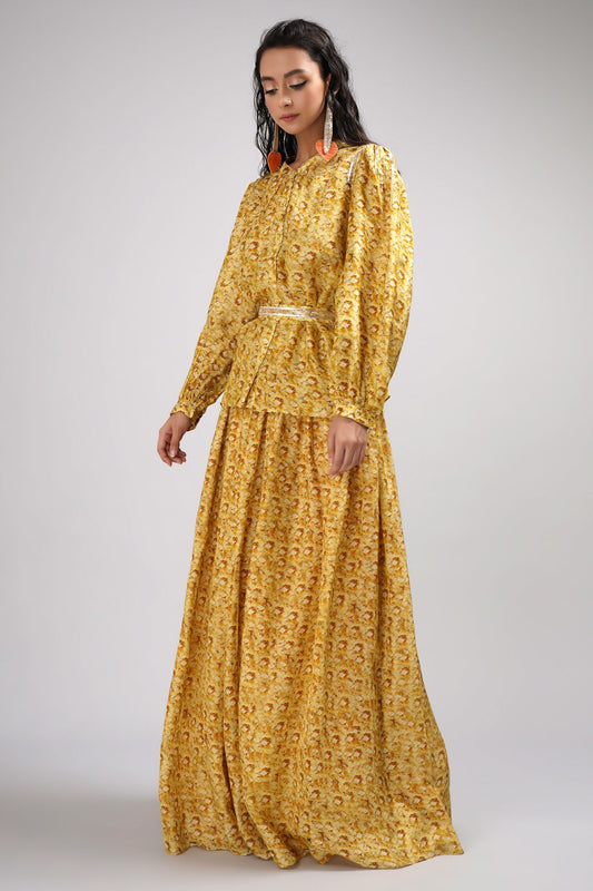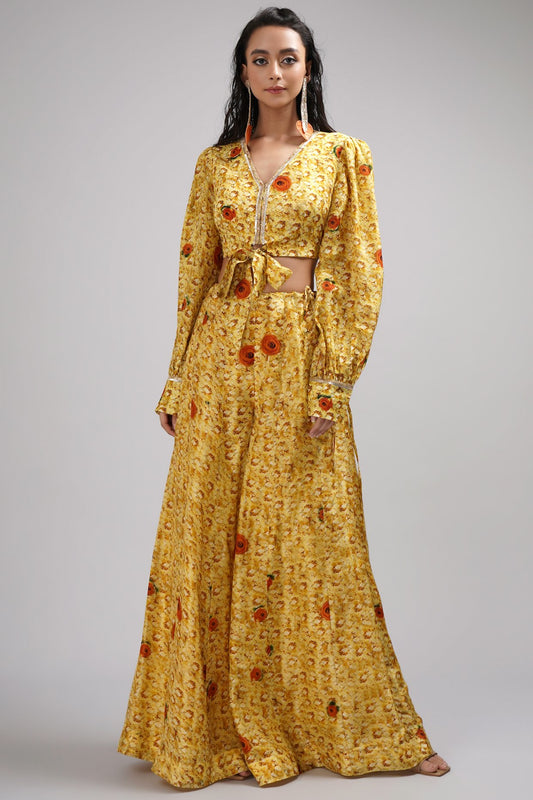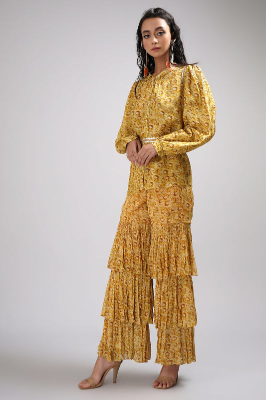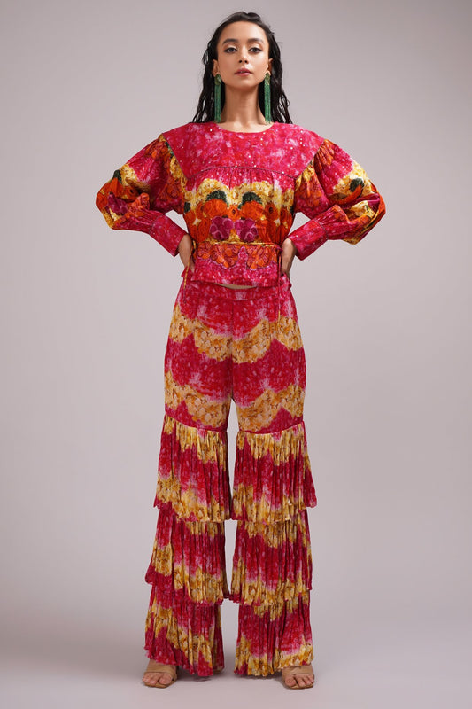 Scoop Neck Bustier Blouse Light Sharara Set Paired With A Stylised Jacket.
