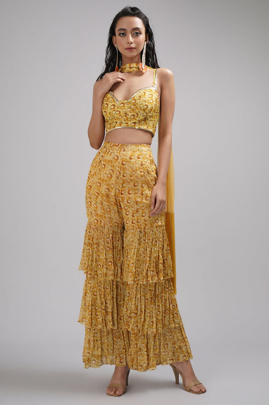 Sweetheart Neck Bustier Blouse Light Sharara Set