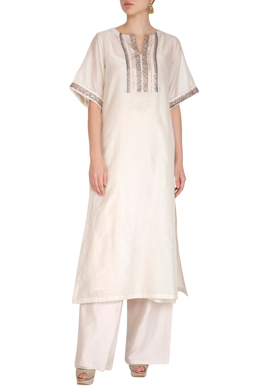 Off White Embroidered Kurta With Palazzo Pants