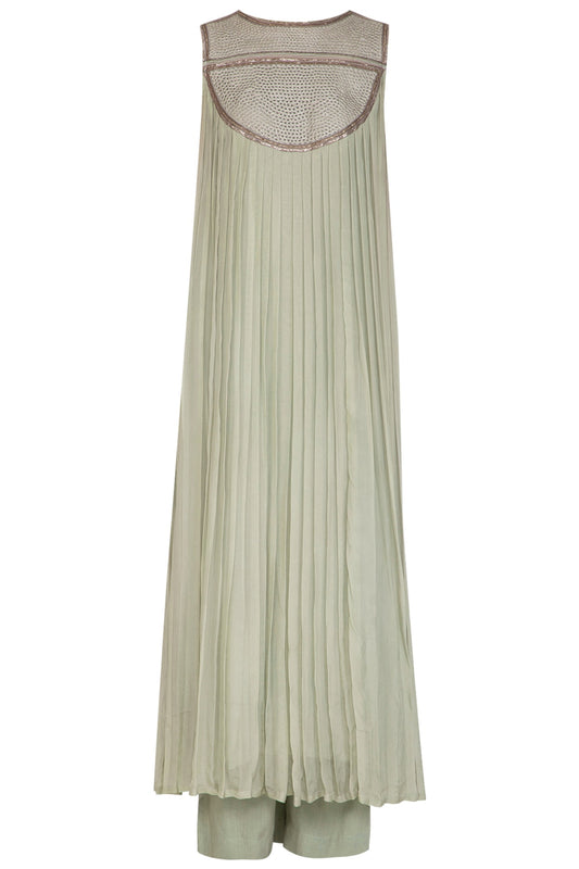 Rusty Green Embroidered Kurta With Palazzo Pants