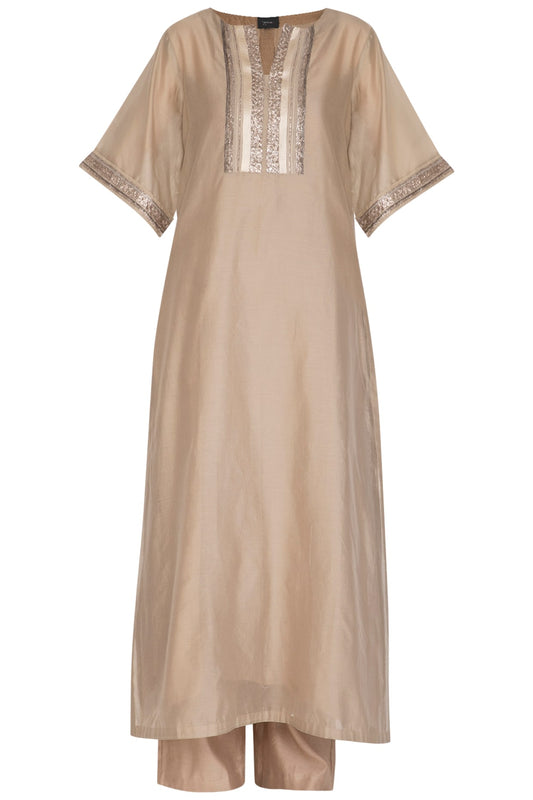 Beige Embroidered Kurta With Palazzo Pants