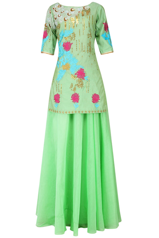 Peppermint Embroidered Short Kurta With Palazzo Set