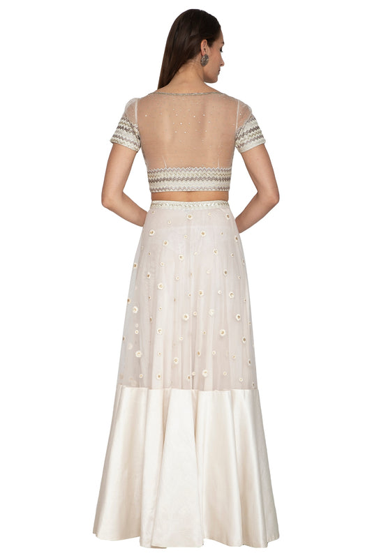 Blush Pink Embroidered Jacket With Top & Short Skirt