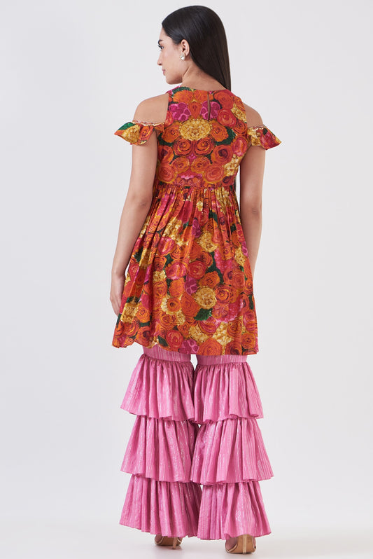 Pink Cotton Silk Sharara Set
