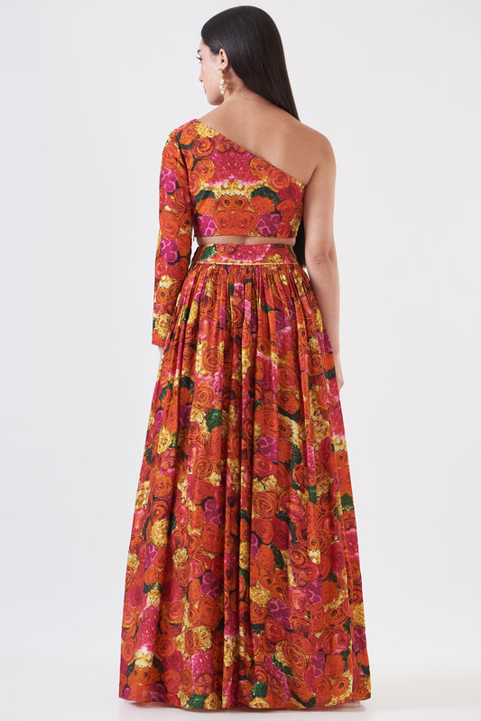 Multi-Colored Upada Silk Floral Printed Skirt Set