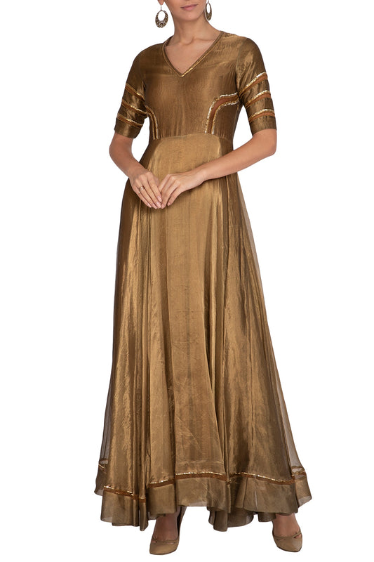 Grass Green Chinon & Shimmer Georgette Printed Kaftan Set