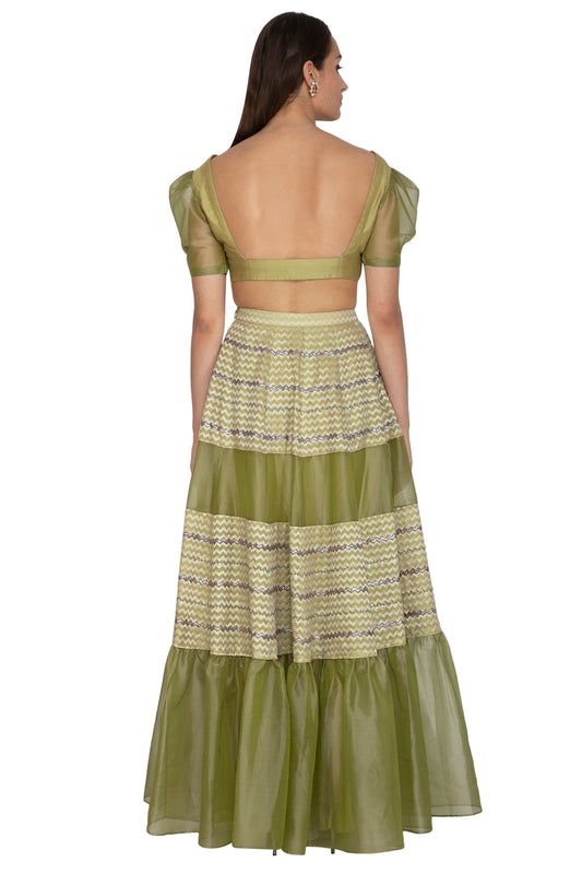 Olive Green Embroidered Blouse With Lehenga Skirt