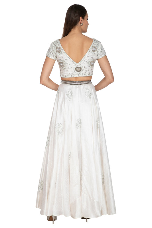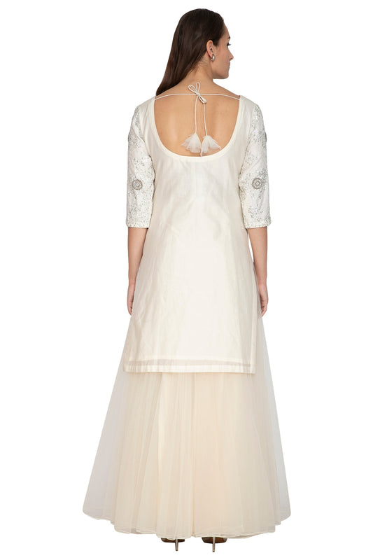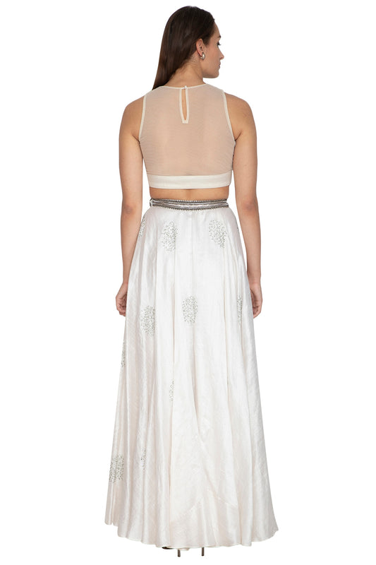 White Embroidered Shrug Jacket With Crop Top & Palazzo Pants