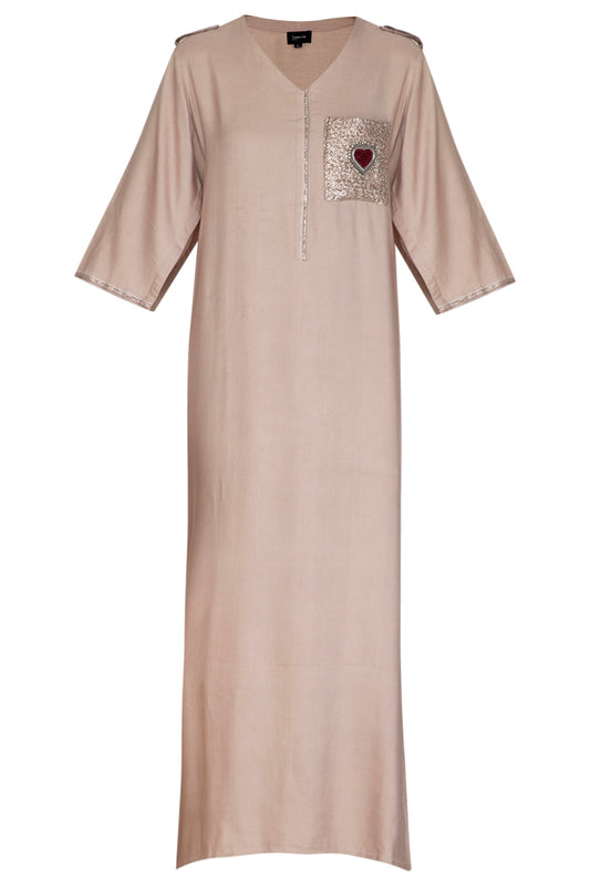 Beige Embroidered Kurta With Crop Top, Pants & Belt