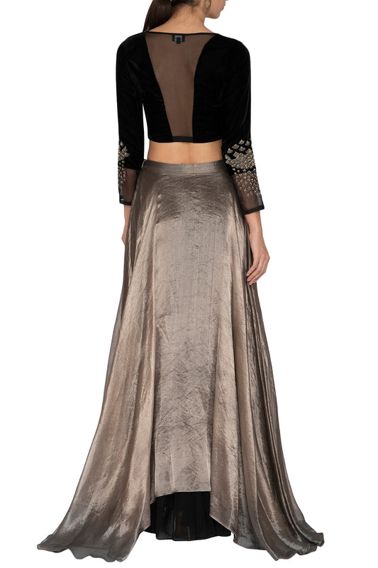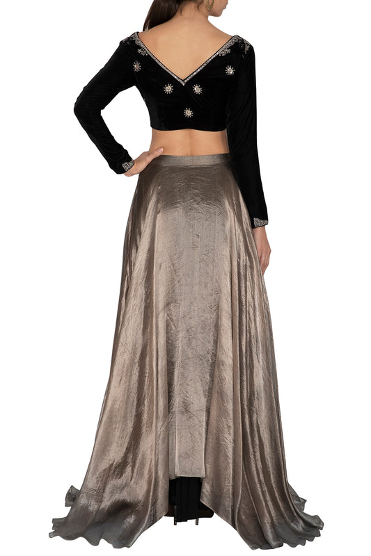 Black & Metallic Grey Hand Embroidered Lehenga Set