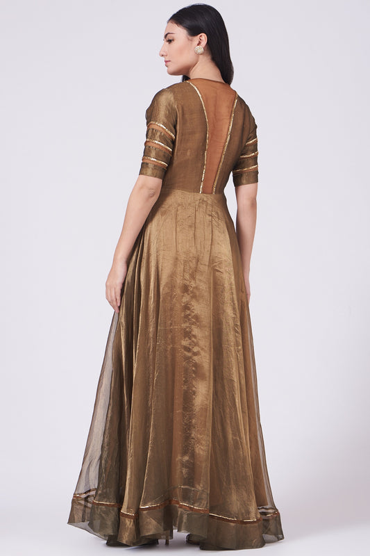 Deep Wine Upada Silk & Shimmer Georgette Handpainted Draped Pant Saree Set