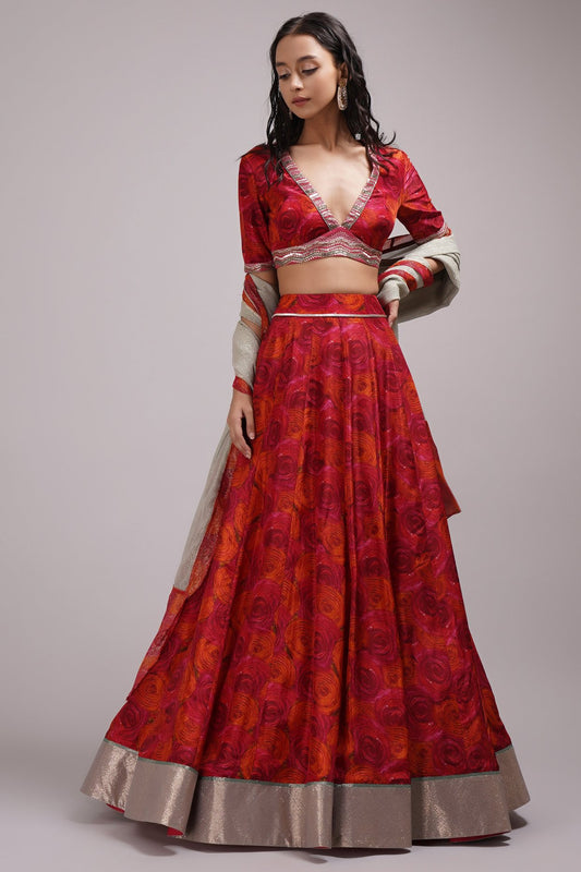 Sweetheart Neck Full Sleeve Blouse Lehenga Set.