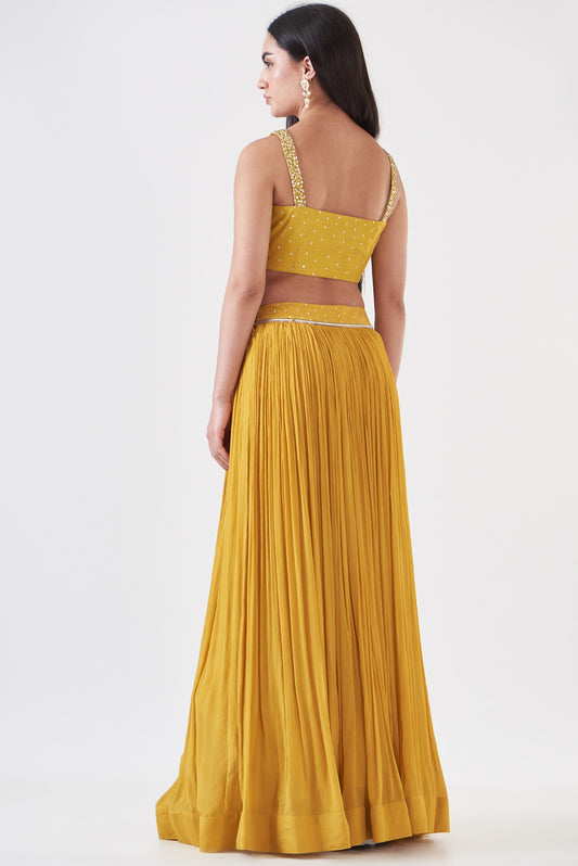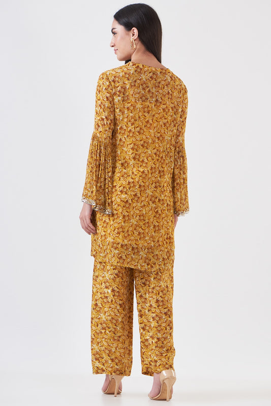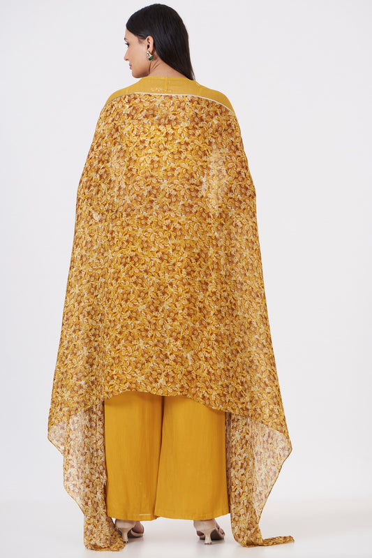 Mustard Chinon & Shimmer Georgette Hand Painted Jacket Set