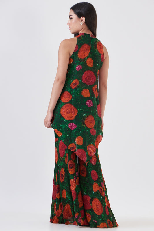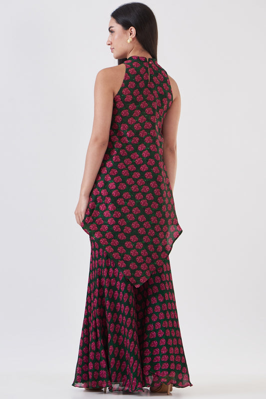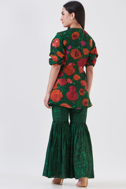 Green Upada Silk & Chinon Hand Painted Sharara Set
