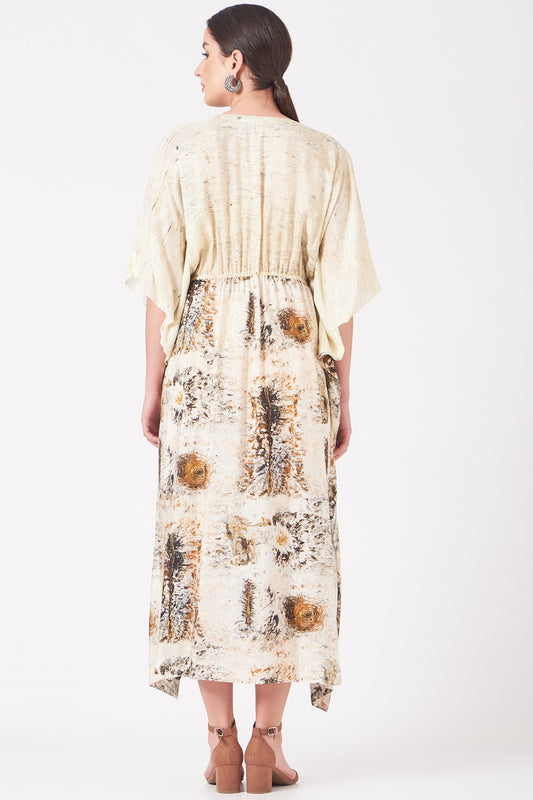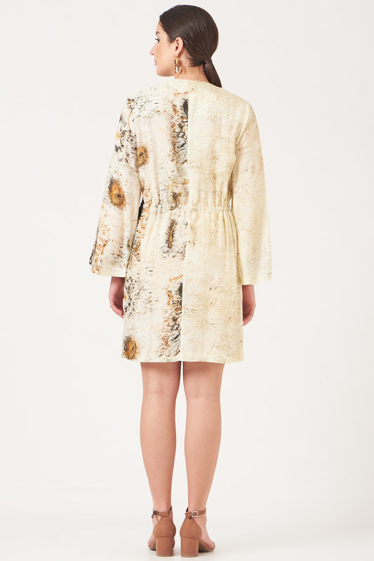 Beige And Gold Divine Print Short Tunic Dress