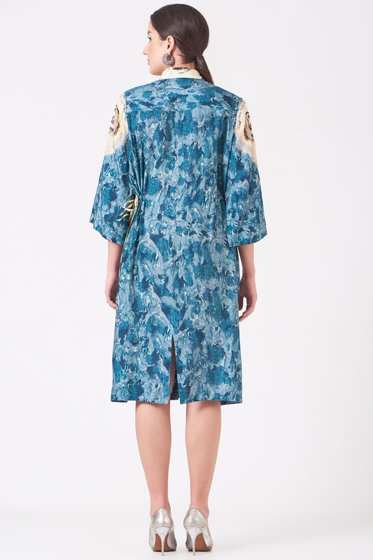 Teal Blue Hand Painted Tunic Dress