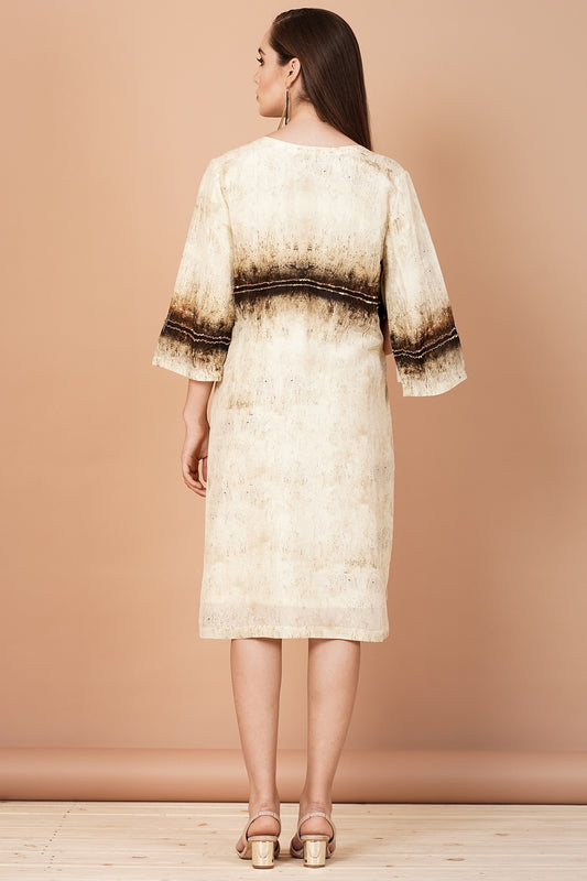 Beige & Brown Printed Shift Dress