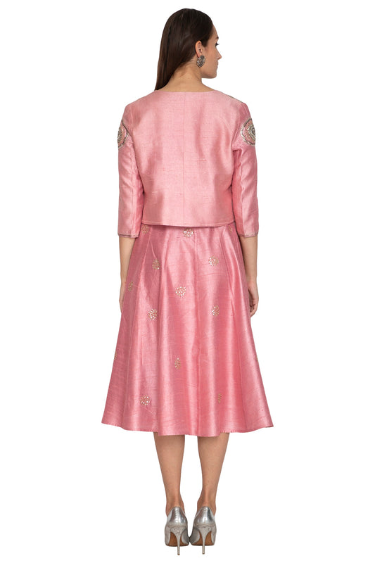 Blush Pink Embroidered Jacket With Top & Short Skirt