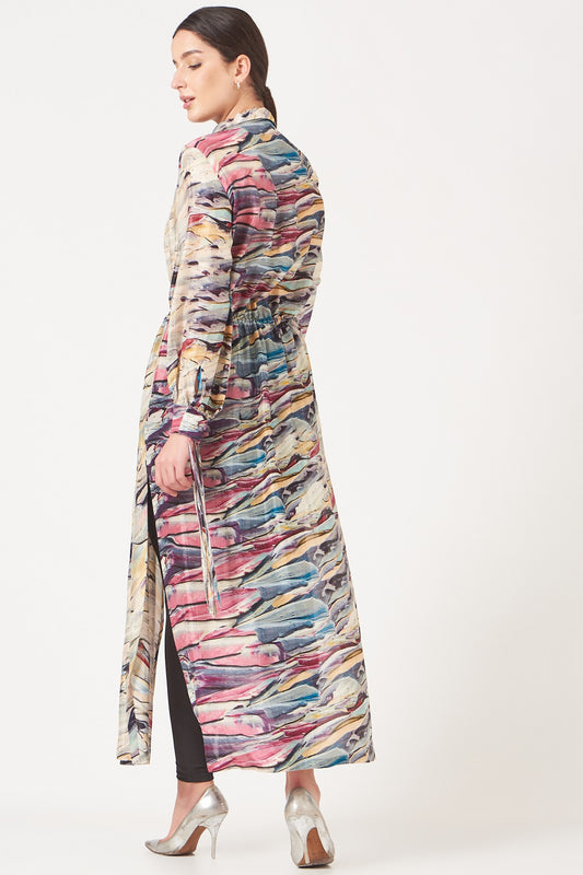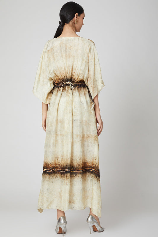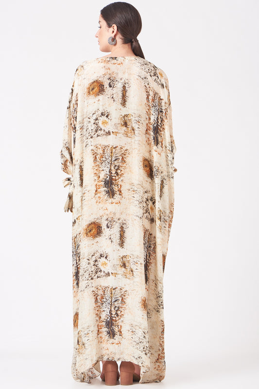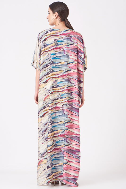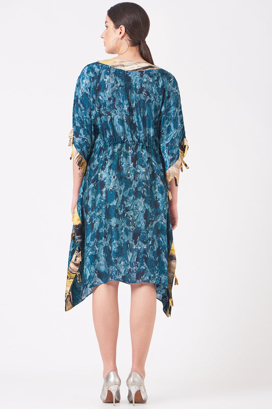 Multicolor Awake Print Short Kaftan Tunic Dress.