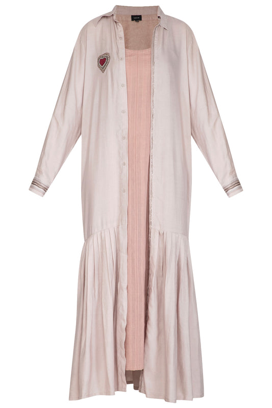 Beige Embroidered Kurta Dress