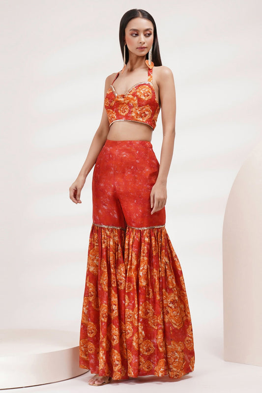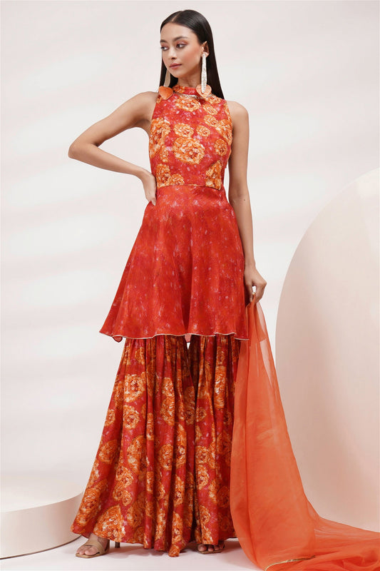 Scoop Neck Short Kurta Ruffled Sharara Set