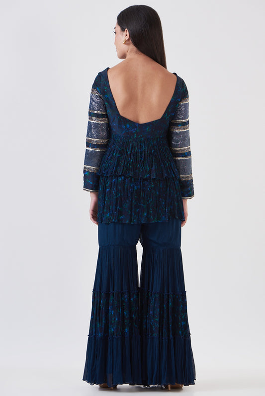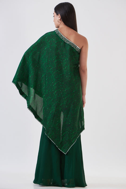 Green Upada Silk & Chinon Hand Painted Sharara Set
