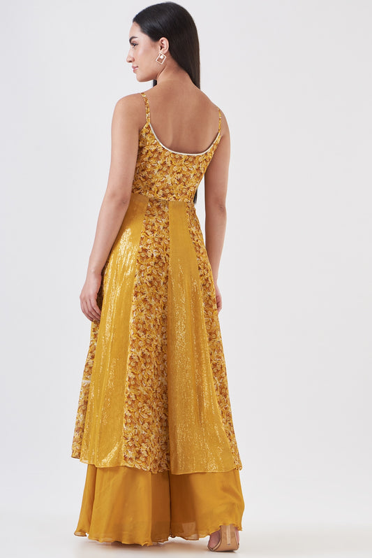 Mustard Upada Silk Embroidered & Hand Painted Kurta Set