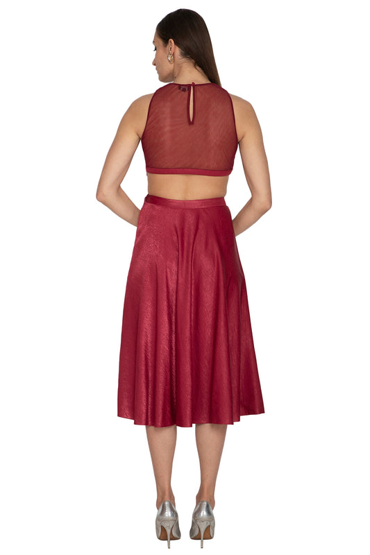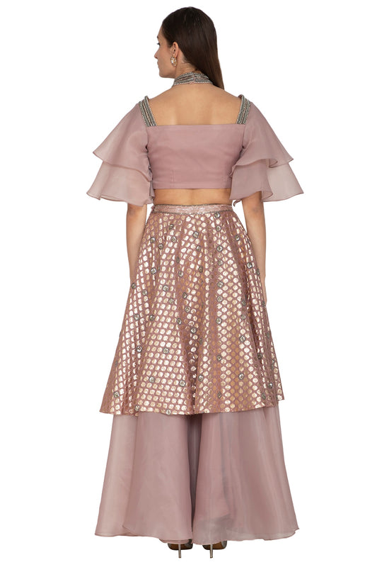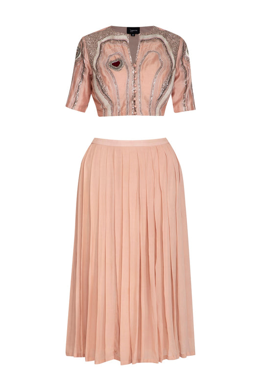 Icy Peach Embroidered Crop Top With Pleated Skirt