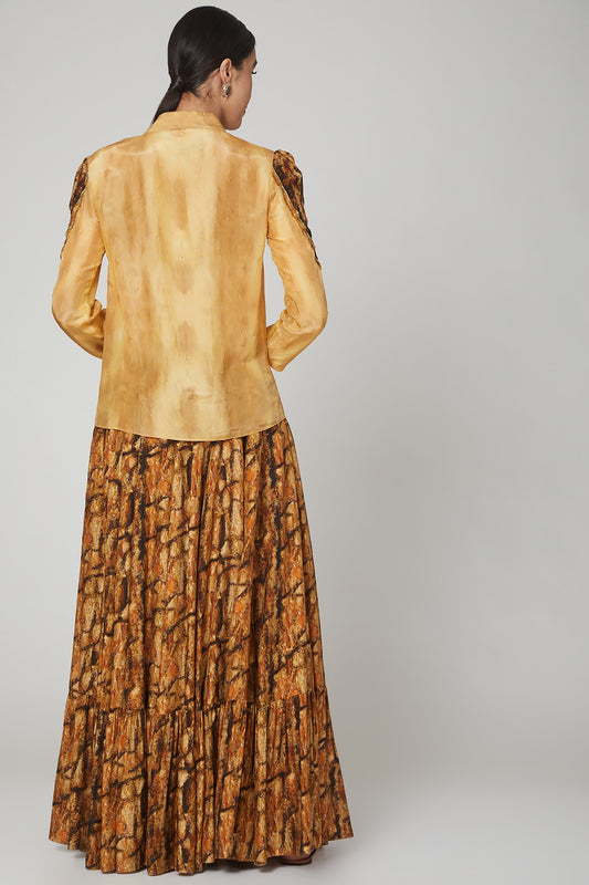 Cuffed Volume Sleeve Blouse Lehenga Set With Belt