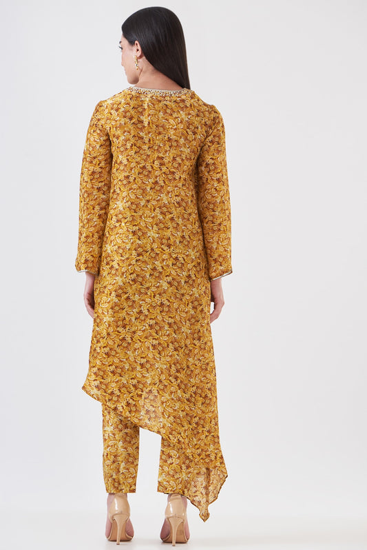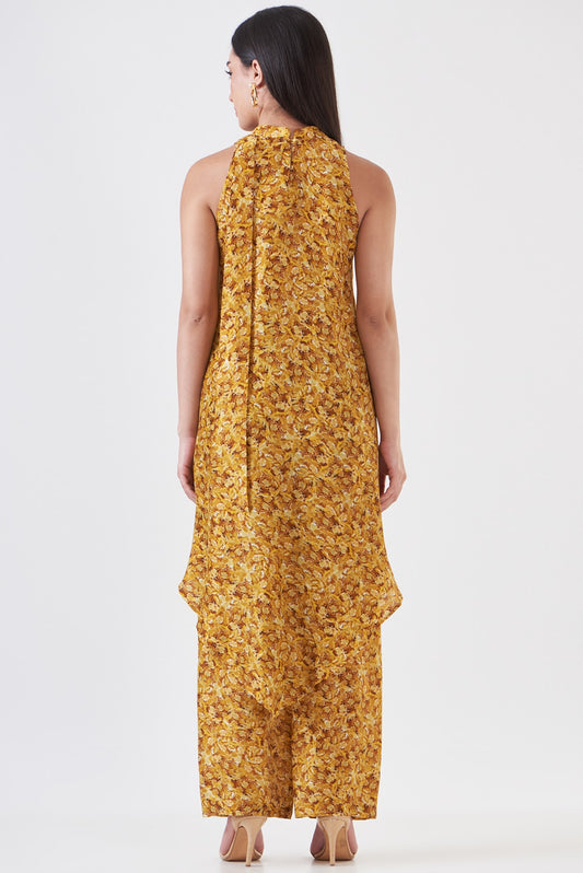 Yellow And Deep Blue Maya Print A-Line Tunic Dress