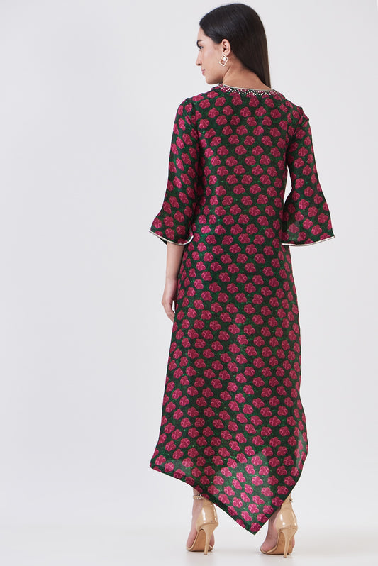 Purple & Pink Upada Silk Hand Painted Tunic Dress