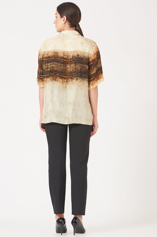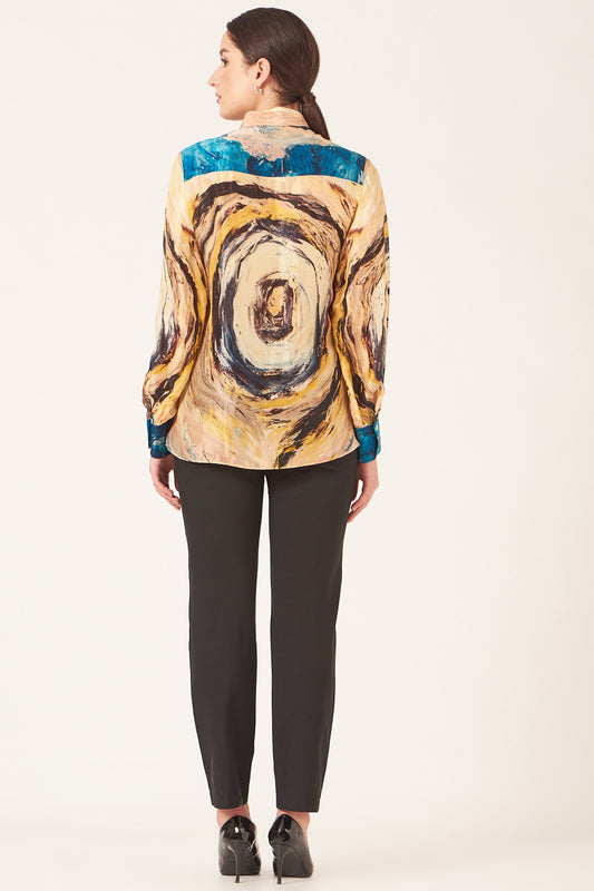 Pale Yellow And Blue Tunnel Print Full Sleeves Shirt